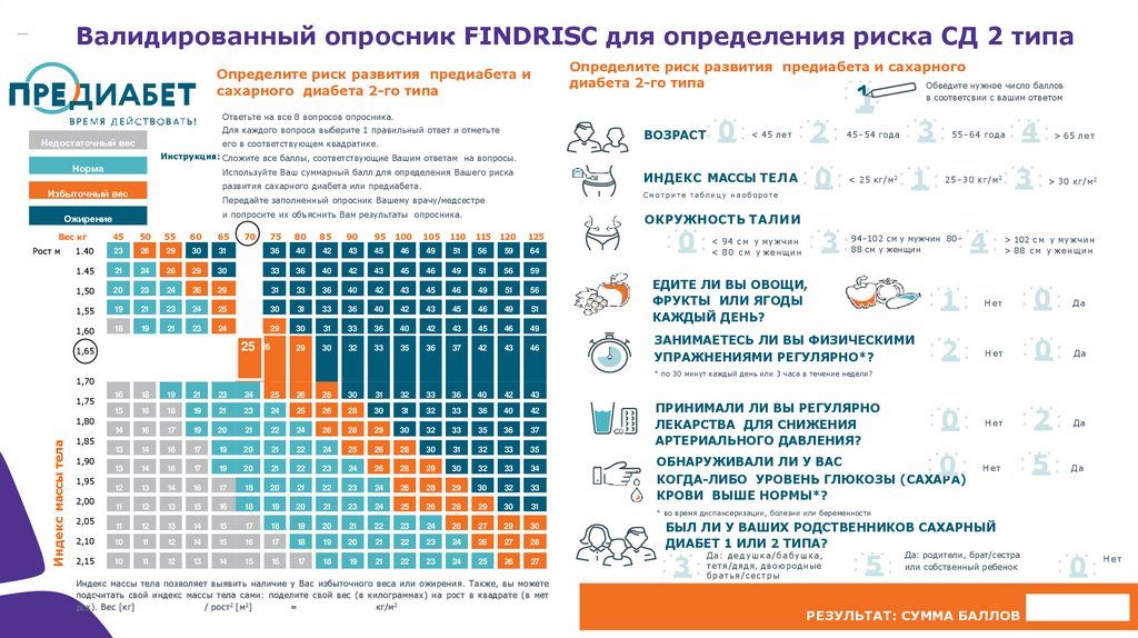 Ниже 7 балов— Низкий: примерно у 1-го из 100 будет диабет